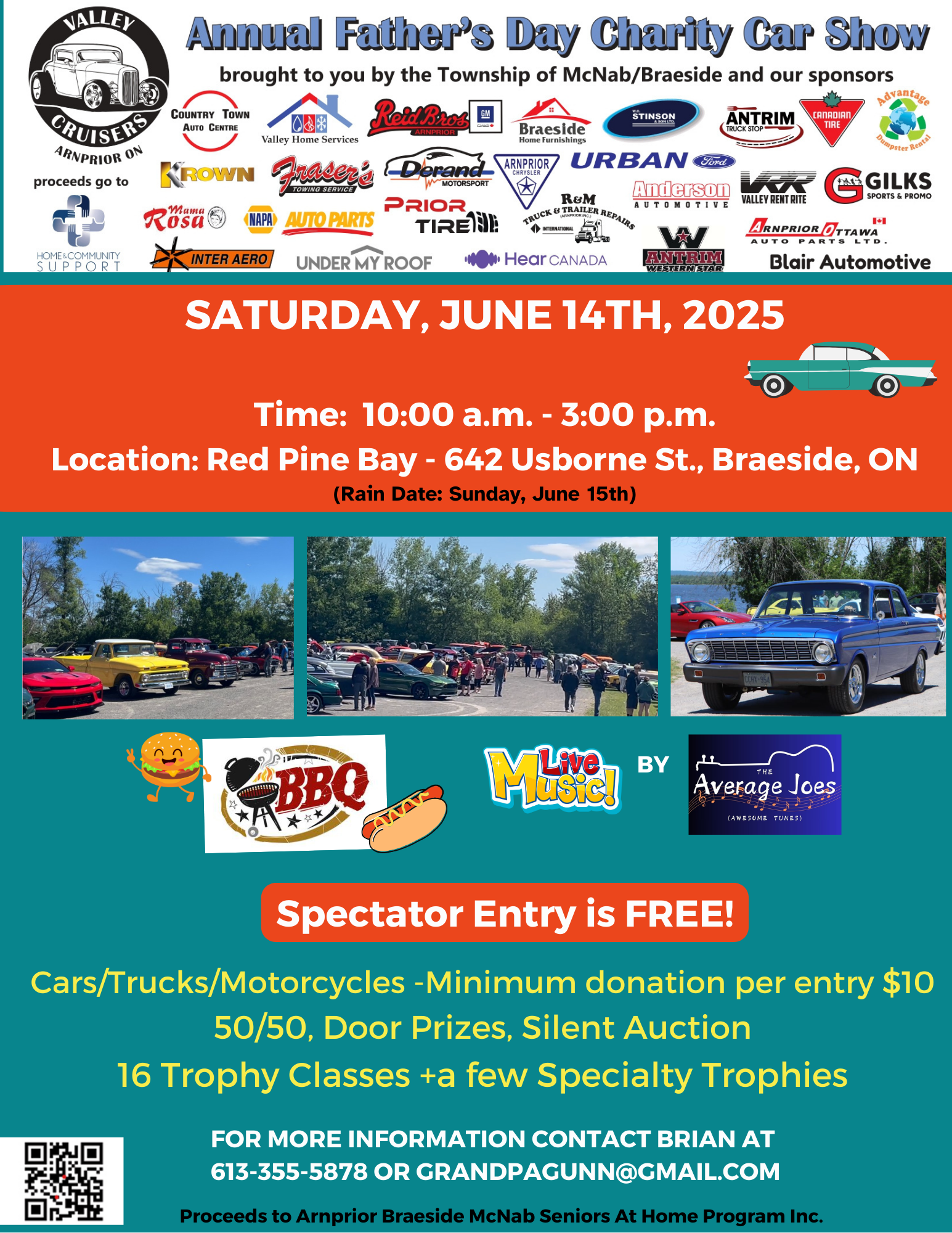 This event is hosted by Valley Cruisers with proceeds to Arnprior Braeside McNab Seniors At Home Program Inc.
