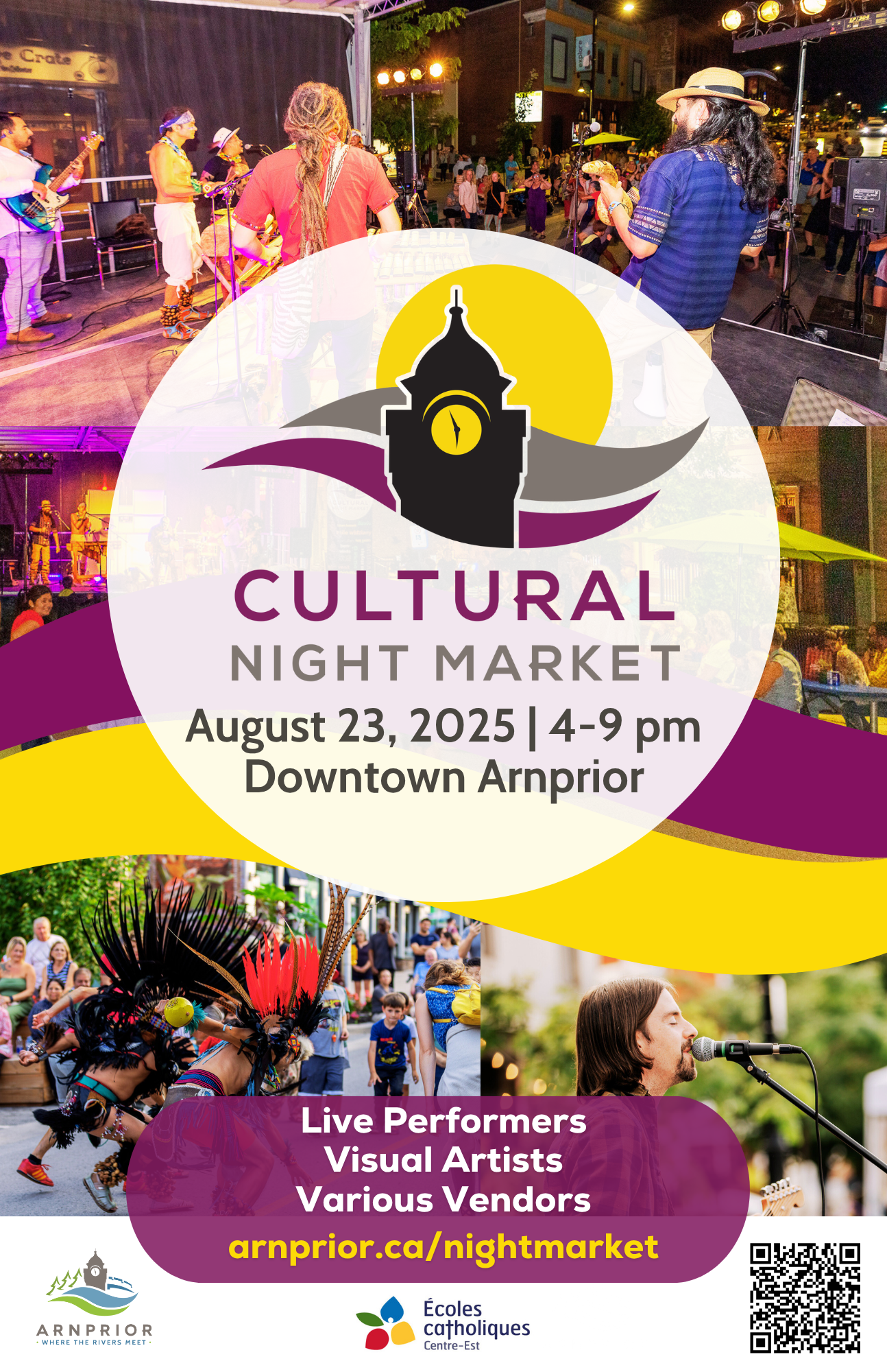 The Cultural Night Market will return on Saturday, August 23, 2025 from 4:00 pm to 9:00 pm in the Arnprior's historic Downtown Core. The Cultural Night Market will feature diverse performers and vendors in an exploration of the different cultures and heritages in our community.
