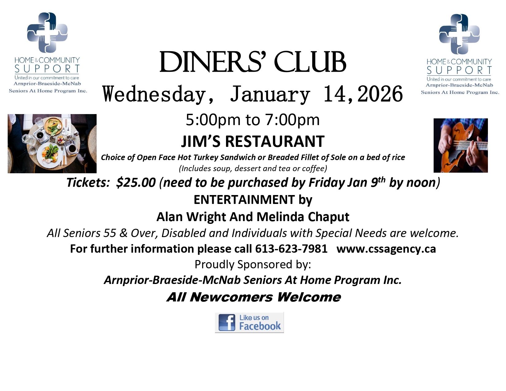 Tickets $25 need to be purchased by noon Jan 9th. Entertainment by Alan Wright and Melinda Chaput